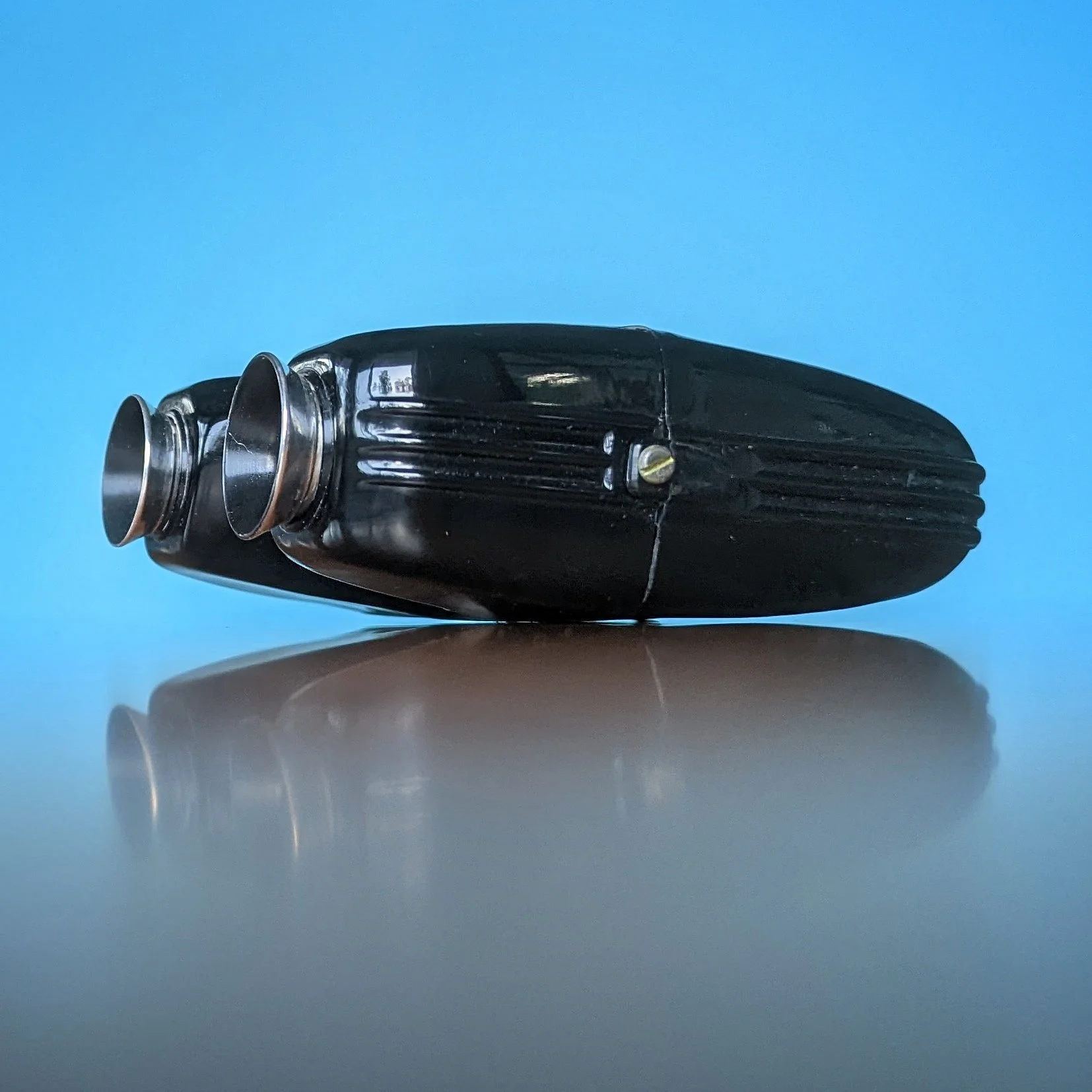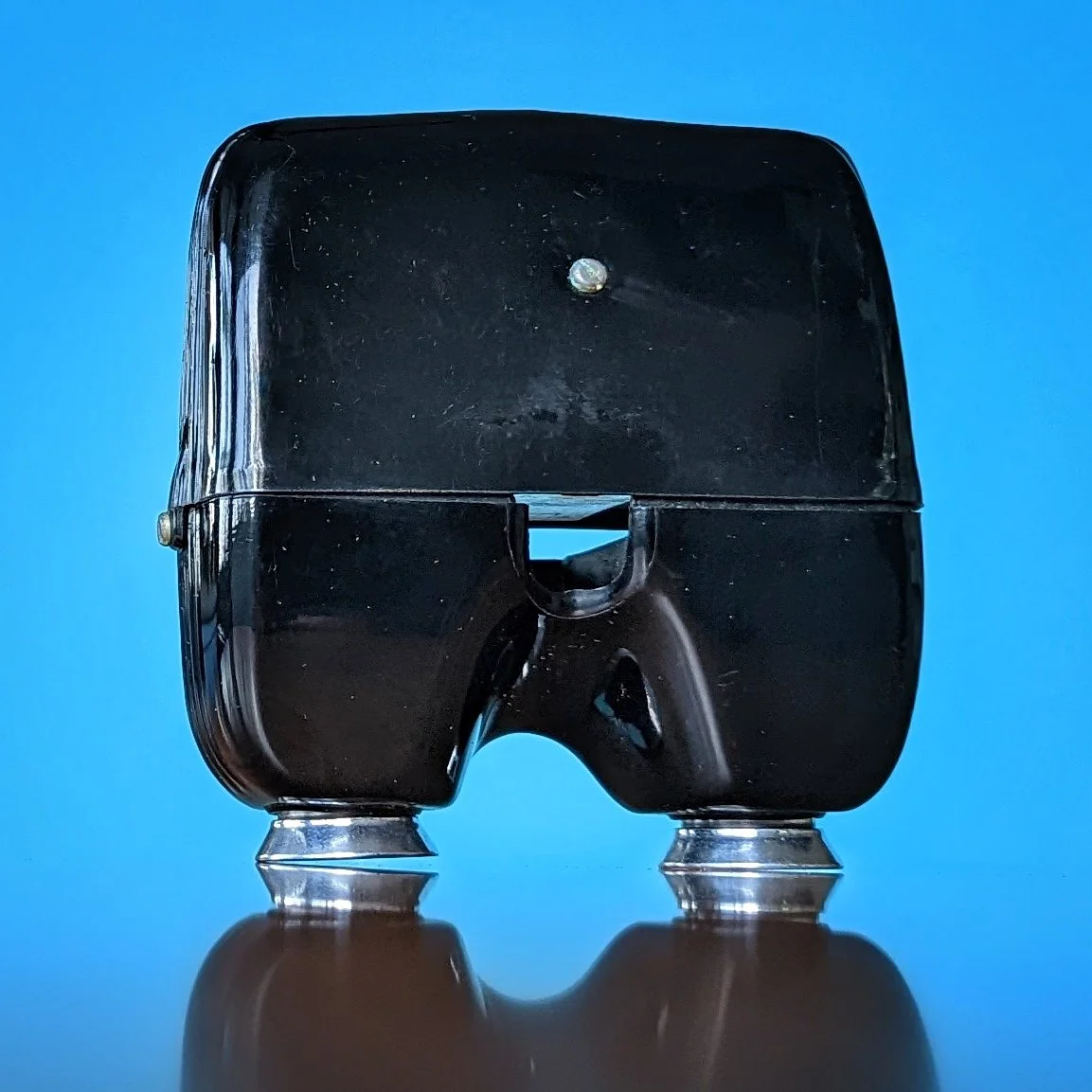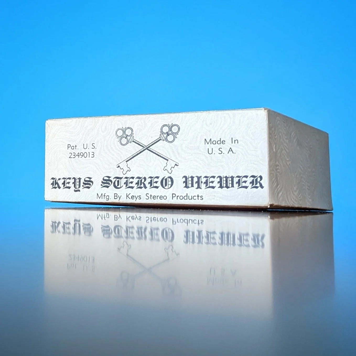 Produced by Keys Stereo Products in California in the late ‘40s and early ‘50s. The same company also produced the Haneel Tri-Vision camera and at some point changed the company name to Haneel, patented the viewer and marketed it under the Haneel name. So you’ll more often find this viewer stamped with the Haneel logo and patent number. Supposedly, both the Keys and the Haneel brands had a larger battery-operated viewer and a smaller, non-illuminating viewer.