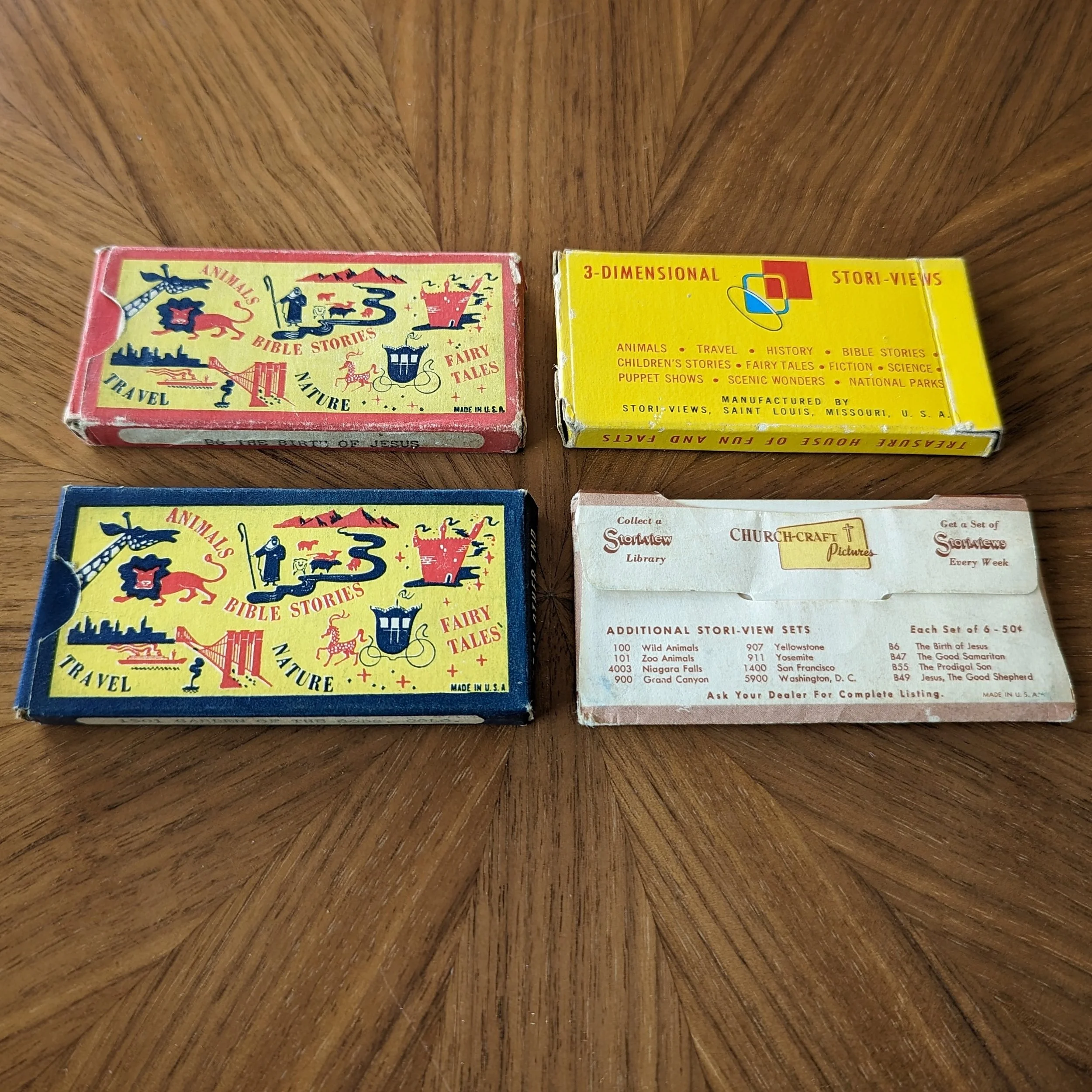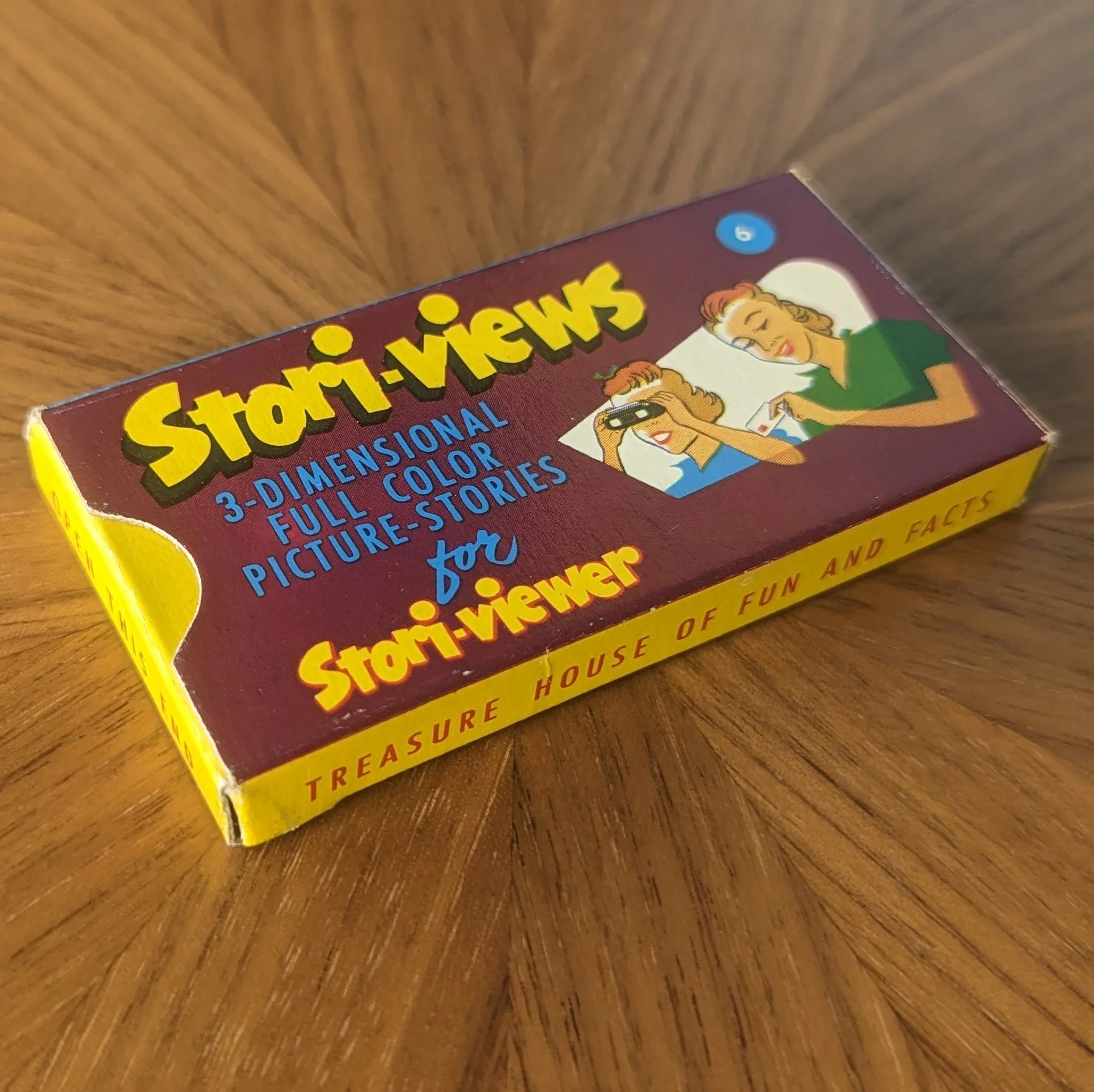 Bible stories were Church-craft’s specialty. This is one of the special “look-through” package designs and is where we see this smaller viewer actually referred to as a “Stori-Viewer” even though the name is not printed on the viewer itself. The views are also referred to as “Stori-slides” instead of “Stori-Views” and Church-craft is listed as a division of Visual Data Corporation.