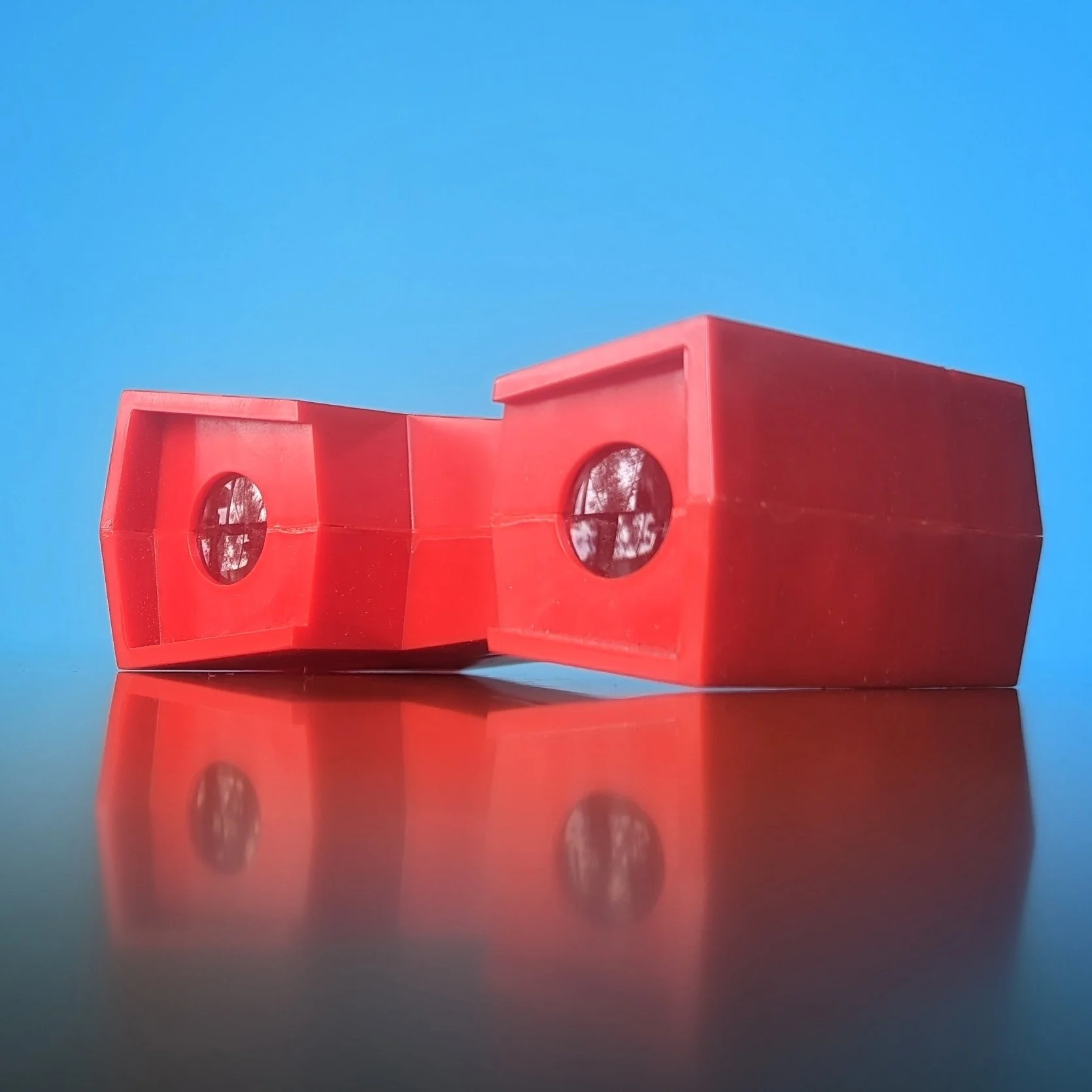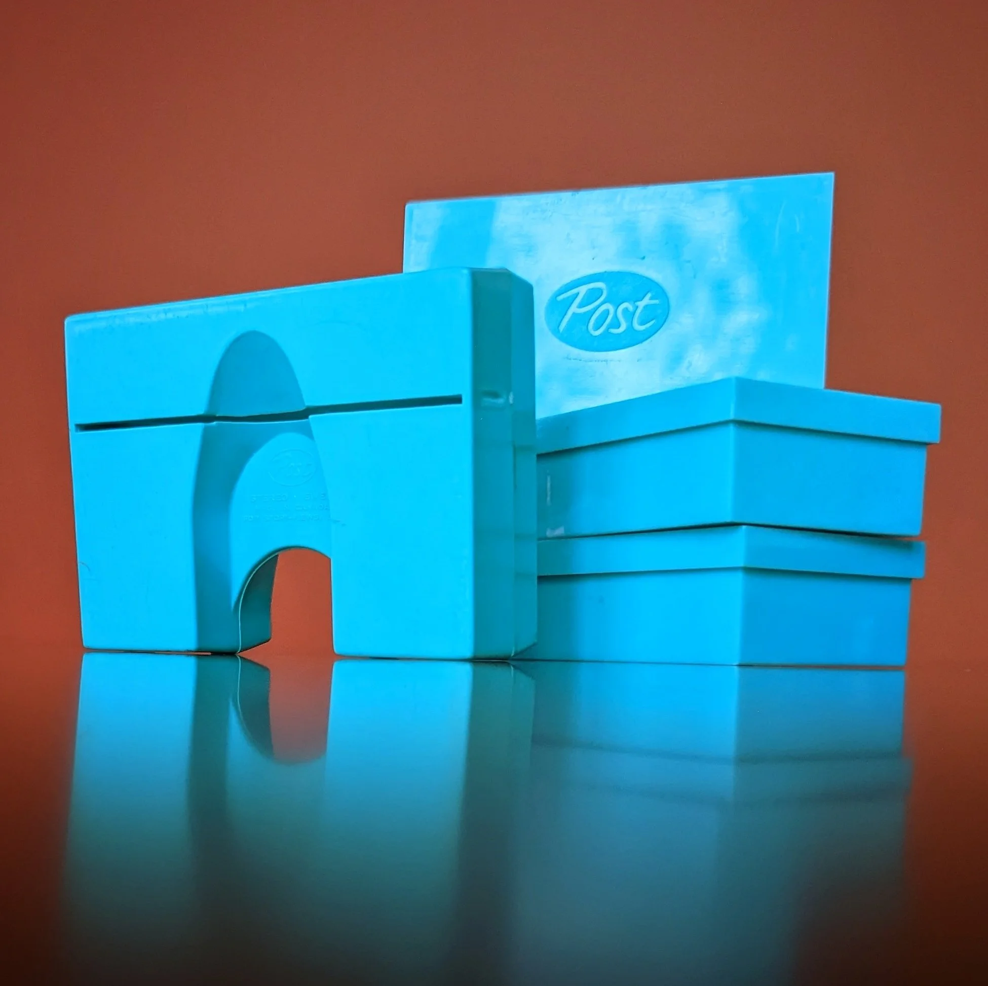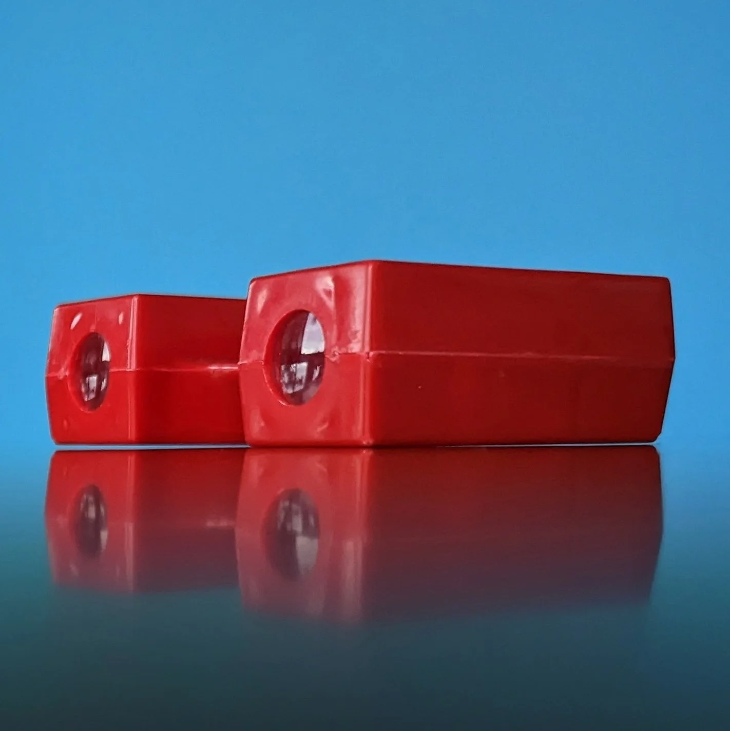 This version is the smallest of all the plastic Church-Craft viewers and we have a red and turquoise blue in our collection. There were even matching plastic storage cases for the views! The cases could accommodate both the single-view cards and the double-view cards (most of the earlier Church-craft Pixie-Views were double-view cards) , as shown in the photo below.