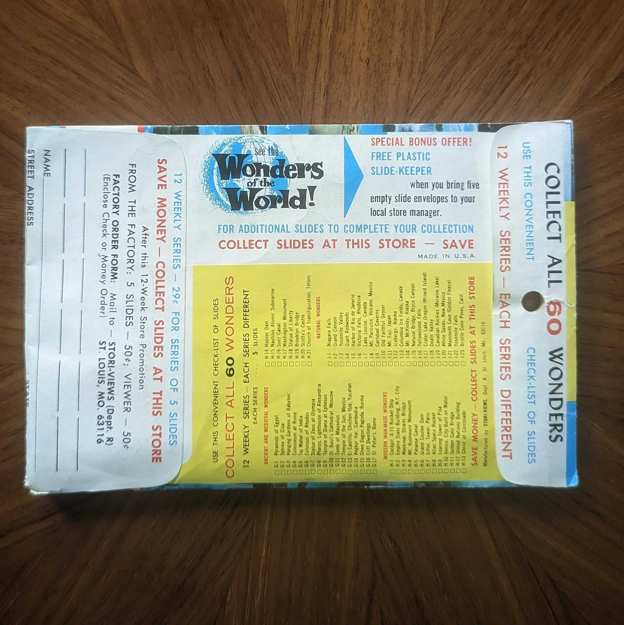This stereoview subscription service was part of their Wonders of the World marketing campaign and designed for the viewer above. These were ordered directly from the Stori-Views company.