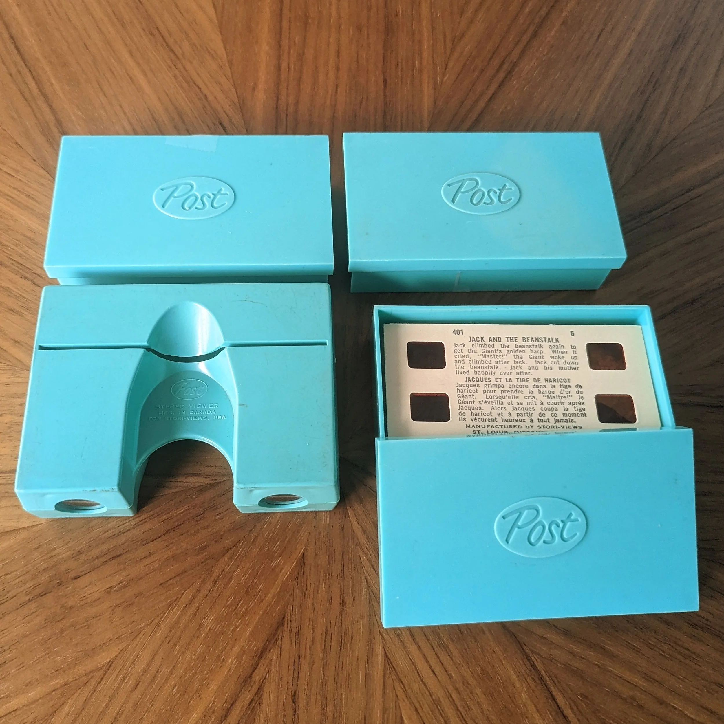 This turquoise blue Post Cereal-branded set was manufactured in Canada for Stori-Views. It comes with matching branded storage cases for the views.
