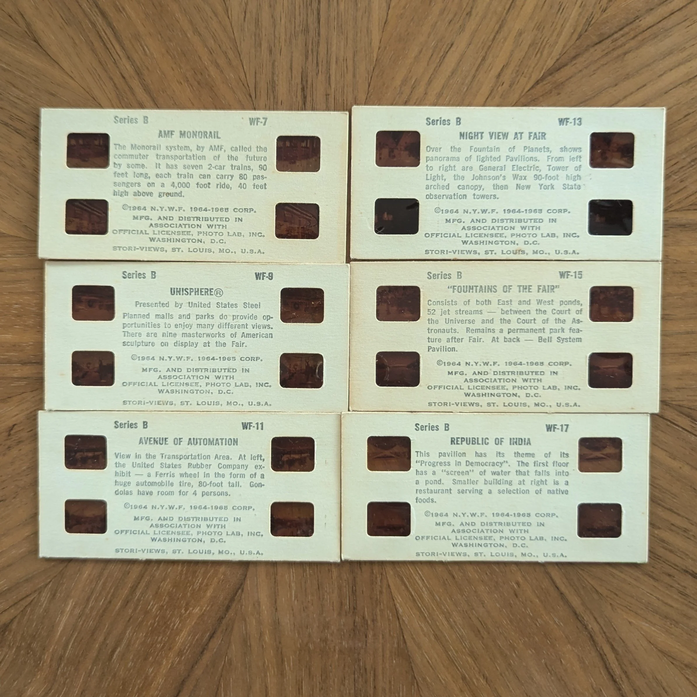 Stori-Views collaborated with Photo Lab, the official licensee of the 1964 New York World’s Fair, to publish two series of cards: Series A and Series B.
