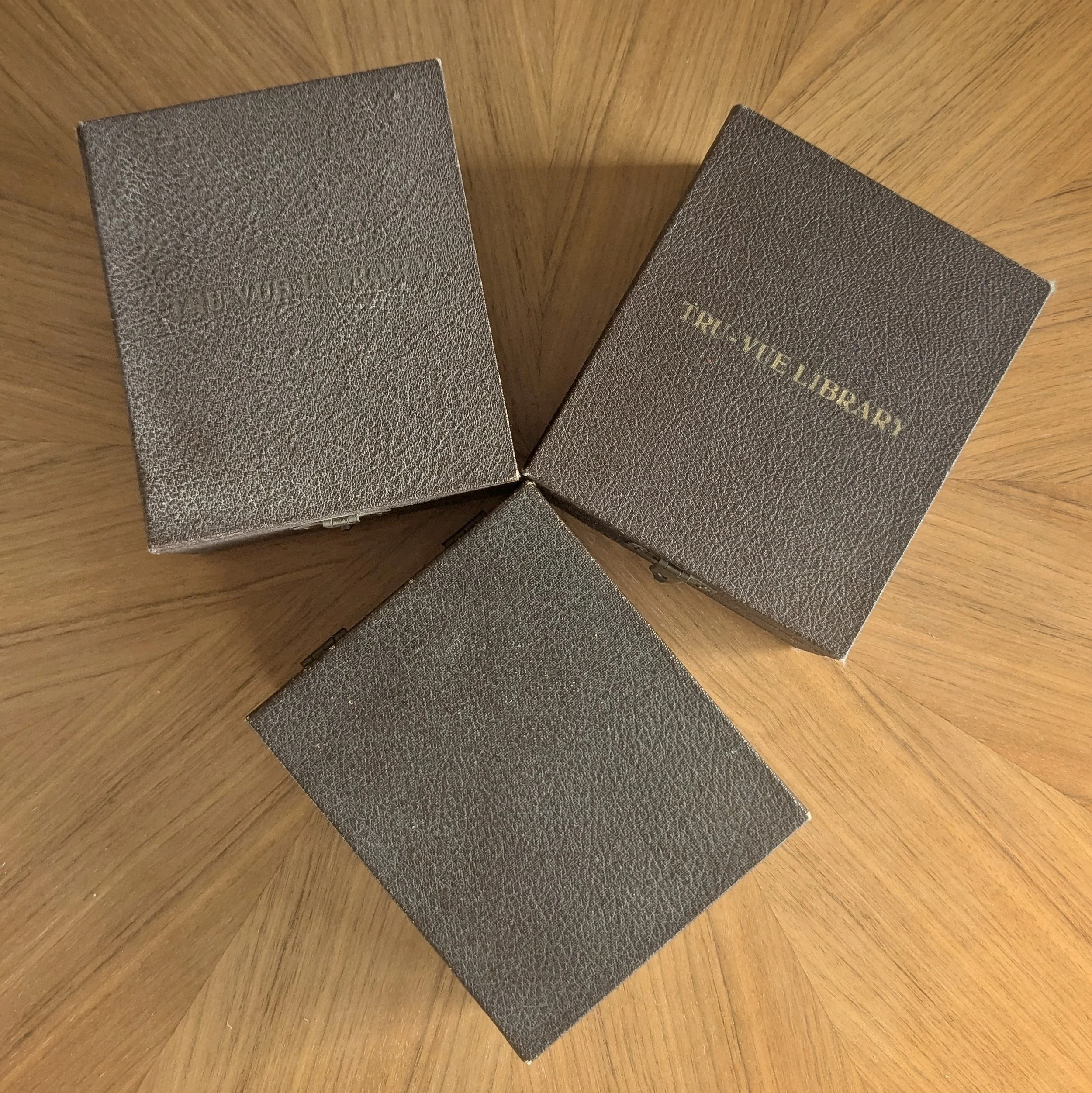 With their growing library of films, it makes sense that Tru-Vue would come up with attractive ways for buyers to store all those little film boxes. It’s pretty cool to see how the library case design evolved over the years. Serious collectors get way into the small details like latches, hinges, interior colors, etc., and are always excited to come across a new variation.